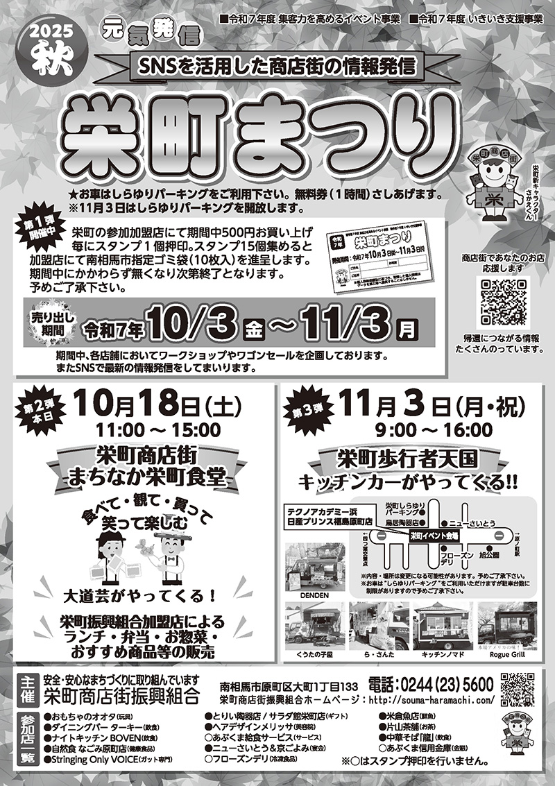 2025秋 栄町まつり 10/3~11/3 (10/18 栄町商店街 まちなか栄町食堂)